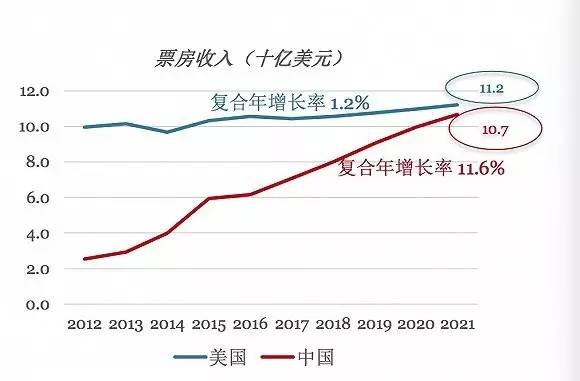 2017年6月8日,普华永道发布《2017-2021年全球娱乐及媒体行业展望》(Global Entertainment and Media Outlook),在结合过去5年的数据的同时,预测了未来5年里,中国娱乐及媒体行业的整体发展情况。值得一提的是,在这份报道中,普华永道预测,中国有望在2021年取代美国成为“世界第一票房市场”。