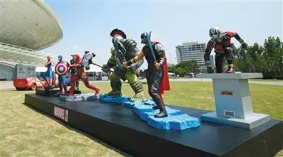 会场外迪士尼旗下的漫威超级英雄雕塑十分醒目