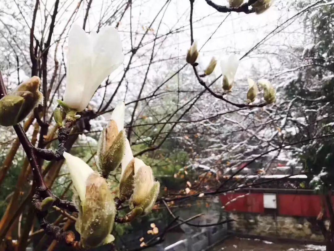 除了这些耐寒的长青植物外,潭柘寺闻名遐迩的玉兰花也悄然间探出雪白的嫩芽,含苞待放。而被这场大雪惊动的小生物们在雪地间窜动,庄严的古寺一时间多了几分闲云野趣的味道。