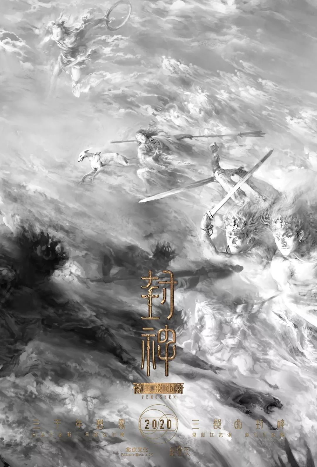 备受关注的华语系列电影《封神三部曲》于2018年10月15日正式发布影片概念海报。该款海报以“阴阳之战”为主题,以中国传统的太极为原型,借助翻腾汹涌的真元之气,呈现了一个遥远而深邃的上古宇宙,并以细腻的笔触刻画了金戈铁马的激烈战争场面,整体画面庄严宏大,气势磅礴,足以堪称视觉艺术大作,印证了《封神三部曲》将凝聚中华三千年以来的浪漫想象与瑰丽文化,打造属于中国人自己的英雄神话史诗钜制。