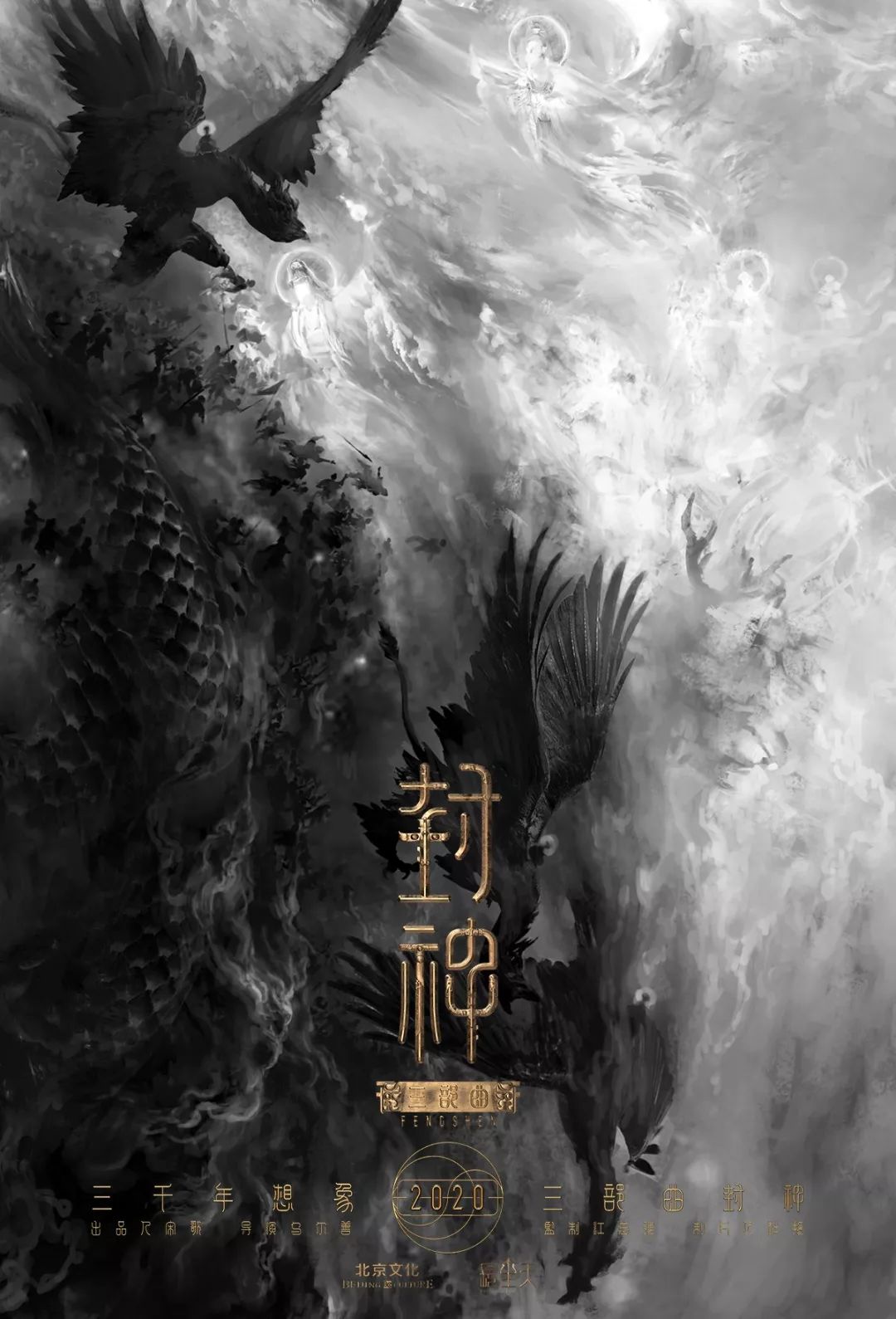 本款海报以太极图为原型,暗合“易有太极,是生两仪”、“(阴阳)二气交感,化生万物。万物生生,而变化无穷焉。”的中国古典学说,用黑白二色的阴阳元气化生正邪两方势力,将封神故事中正邪两派人仙妖三界的万象众生囊括其中,尽显神话史诗电影的宏大格局;同时海报中阴阳二气流转不息,相互对立交融,形成了一方蕴藏海量玄机的封神宇宙图式,气韵生动的原创中国古典美学一览无余。