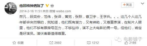 他称,这些演员在这几年都会突然爆的,因为他们既有潜力,又尊重表演