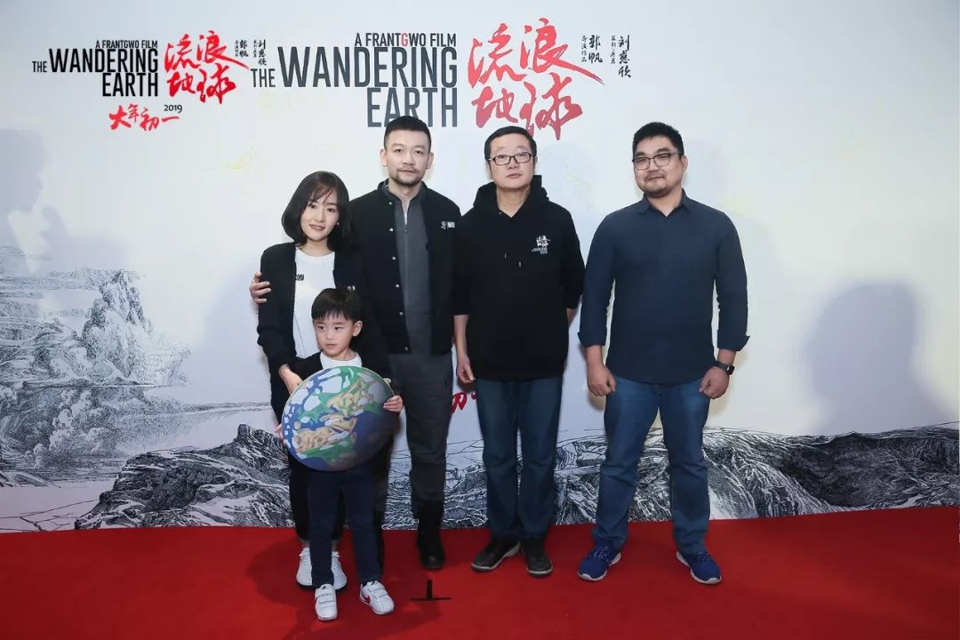 郭帆导演一家三口与刘慈欣、制片人龚格尔亮相红毯