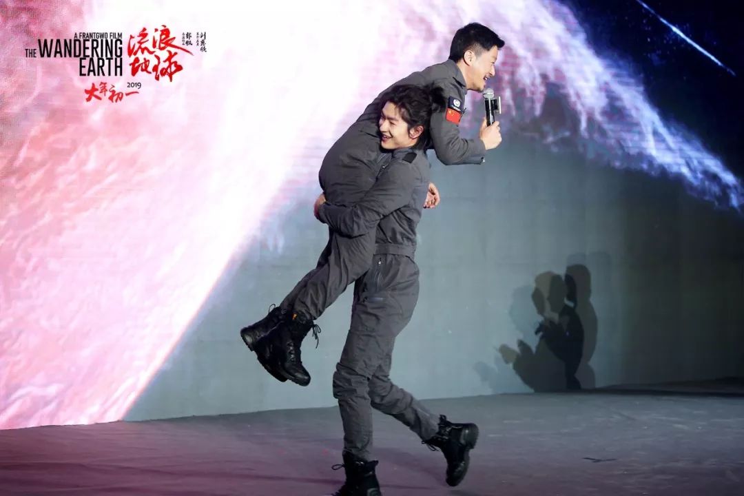吴京表示:“孩子小的时候父亲就是山,扛着孩子撑起一片天。作为普通人,都希望当自己老去时,儿子可以像父亲那样撑起这个家,‘抗起’父亲。说到动情时,电影《流浪地球》中扮演吴京儿子的屈楚萧则以实际行动诠释如何撑起一片天,二人破天荒来了一回“父爱如山”款拥抱,屈楚萧使出全身力量将吴京扛在肩上,引得全场爆笑。