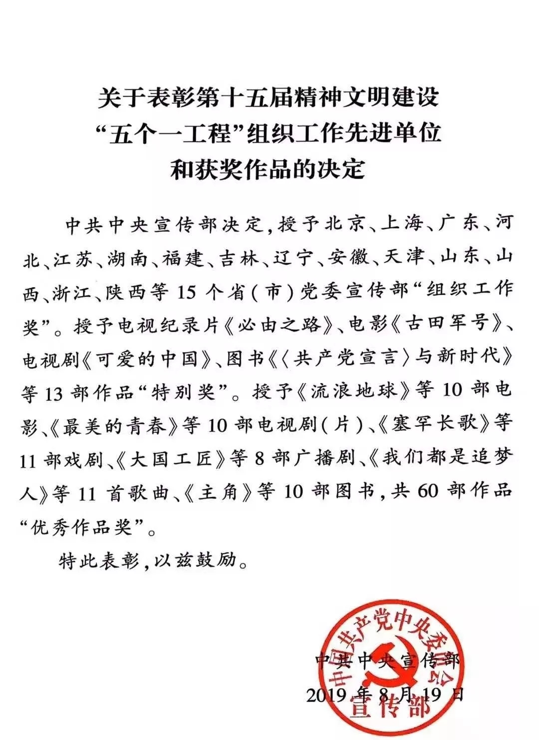 精神文明建设“五个一工程”是由由党中央倡导,中共中央宣传部组织,自1992年起每年进行一次,评选上一年度各省、自治区、直辖市和中央部分部委,以及解放军总政治部等单位组织生产、推荐申报的精神产品中五个方面的精品佳作。1995年度起,将一首好歌和一部好的广播剧列入评选范围,“五个一工程”的名称不变,从第八届起,“五个一工程奖”改为每三年评选一次,评选范围包括戏剧、电影(包括动画电影)、电视剧(包括电视动画片、电视纪录片)、广播剧、歌曲、图书(包括文学类图书、通俗理论读物和少儿思想道德读物)六个类别。